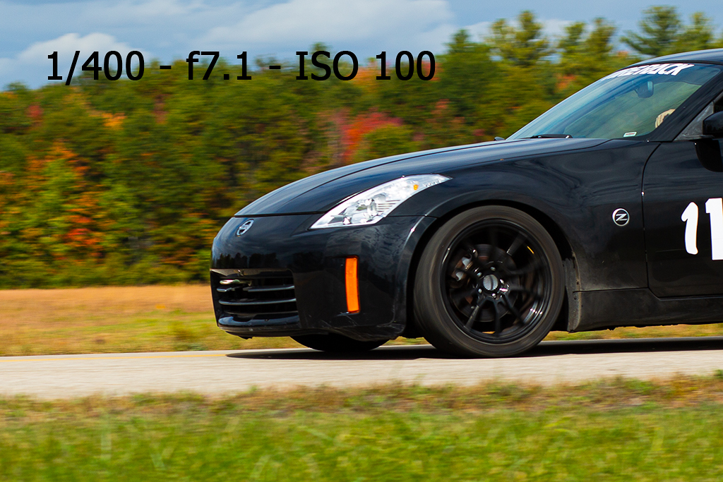 I was in search of the epic car shot. I have tried may times to capture the right amount of motion blur while keeping the car in focus. Presented to me was the perfect opportunity, an SCCA autocross event just miles from home. Shot on my Canon 5D Mark III, this would also be a good place to test out my new 85mm f1.8 Canon lens. These were basic panning shots, where I was standing still and pivoting to follow the motion of the cars. Each location would have different speeds, so after picking a location, it was important to reevaluate the speed of the shot. So, after I picked my location, next step is dialing in the settings on the camera.