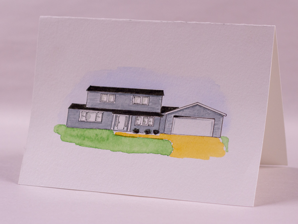 Want a special hand painted folding card to send as a thank you letter? I can paint a house on a 5”x7” folding card on thick, 140 lb (300 g), watercolor paper. These one of a kind thank you letters start at just $35.